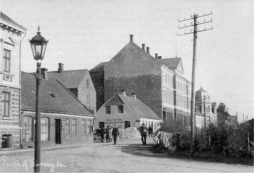 Eskesens lokaler i Havnegade ved Hulvejen. Foto: ca. 1898. |