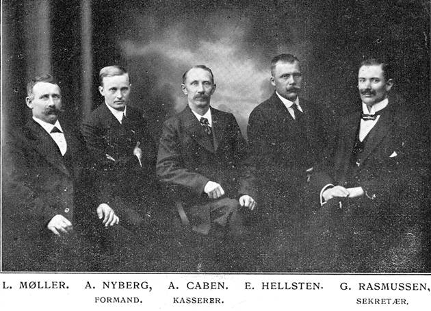 Christiansen, Sekretær, Oskar Boch, Næstformand, Carl Berg, Hugo Strand, Erik